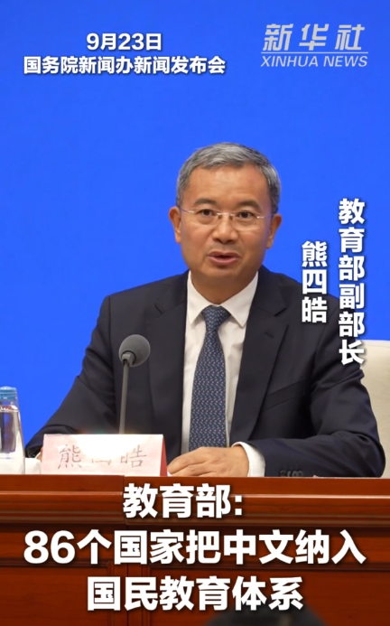 【简介】教育部副部长熊四皓23日在国务院新闻办新闻发布会上介绍,目前有86个国家把中文纳入国民教育体系。